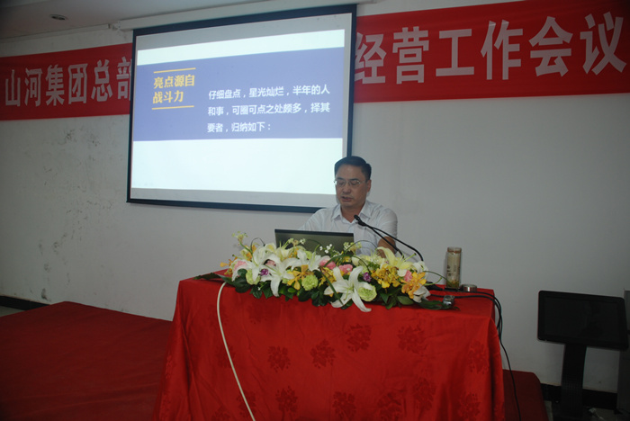 七月的大崎山之巔松濤陣陣,清風(fēng)拂面。山河集團(tuán)總部2013年上半年經(jīng)營工作會(huì)議于7月27日在這里隆重召開,這是集團(tuán)公司自湖北區(qū)域公司從總部分離之后召開的第一次半年經(jīng)營工作會(huì)議,參會(huì)人員共計(jì)五十余人,會(huì)議分上午場(chǎng)和下午場(chǎng),由集團(tuán)公司總經(jīng)理龔衛(wèi)國同志主持。