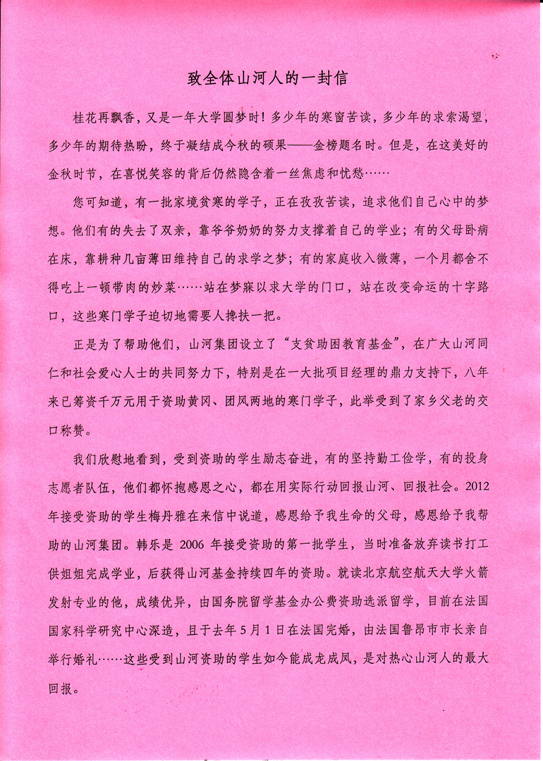 致全體山河人的一封信