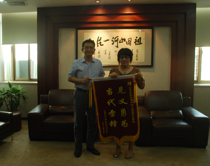 8月5日上午,一位中年婦女帶著“見義勇為 當(dāng)代雷鋒”的錦旗來到山河集團(tuán),神情激動(dòng),說要感謝救命恩人。一時(shí)間,大家摸不著頭腦。聽完她的敘述,一樁見義勇為不留名的壯舉這才浮出水面。