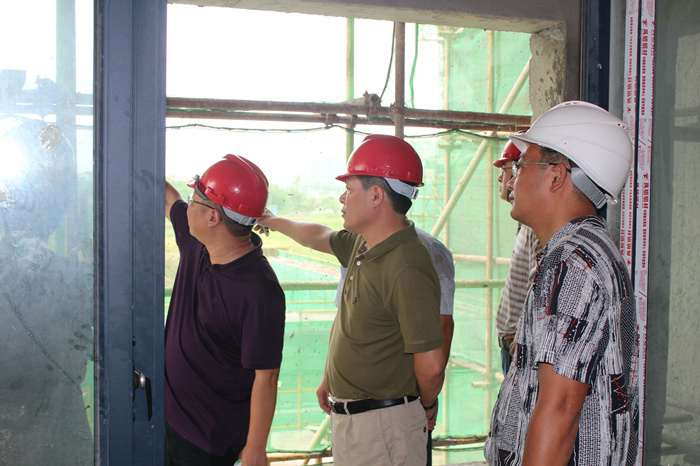 在正在裝修的樣板間內,董事長一行對櫥柜、地板等每個細節(jié)一一進行檢查,并聽取現場工程人員說明。因上周超強臺風“尤特”對工程現場造成了部分損壞,董事長特別交代日后務必加強防范。為了能將房子早日交到業(yè)主手中,也對工程部做出要求:加快工程進度的同時,工程質量也必須嚴格把關!在工作過程中遇到什么困難,及時向上反映,公司會作為強有力的后盾,給予支持。