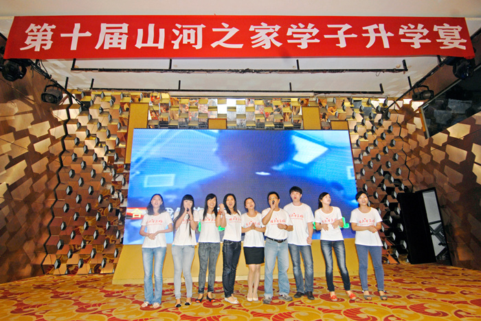 2013年8月27號(hào),為慶祝123位山河學(xué)子在今年高考中金榜題名,“第十屆山河之家升學(xué)宴”在湖錦酒樓如期舉行。