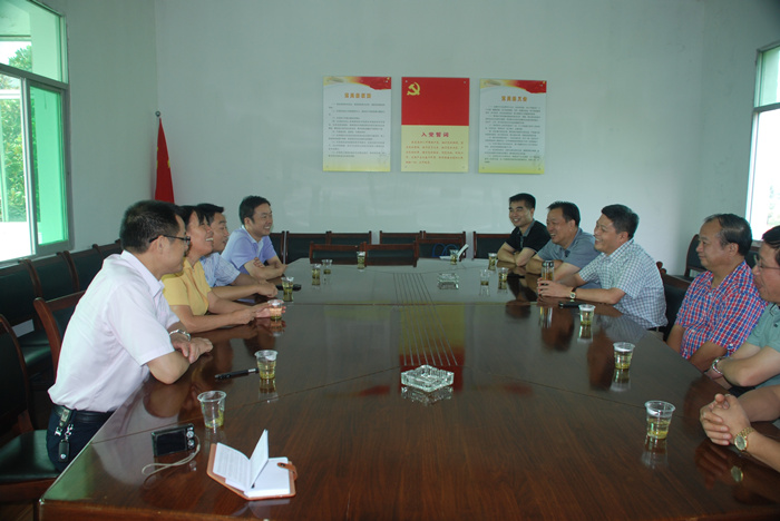 圖為山河集團董事長一行人員與英山縣溫泉鎮(zhèn)領導及百丈河村領導進行調研會談