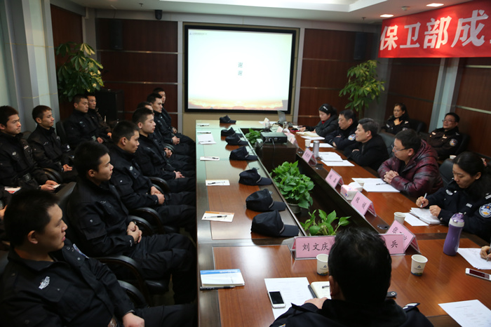 首先,孫寶環(huán)經(jīng)理宣讀了《關(guān)于成立保衛(wèi)部的決定》、《關(guān)于徐剛等同志職務(wù)聘任的決定》兩份文件,黎樂主任介紹了山河集團(tuán)的發(fā)展情況。隨后,董事長程理財(cái)介紹了保衛(wèi)部成立的背景和主要職責(zé),并對保衛(wèi)部員工提出了兩點(diǎn)要求:一是要勤鍛煉、勤學(xué)習(xí),二是要愛崗敬業(yè),防患于未然,疏理、化解矛盾;同時要制訂好職業(yè)生涯規(guī)劃,選擇好未來的職業(yè)發(fā)展方向,在山河的平臺上成長成才。