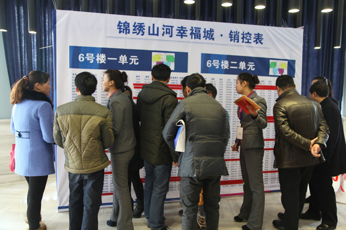 隨著錦繡山河•幸福城正式進入開盤銷售狀態(tài)時,營銷中心門前排起了長龍,購房者心情忐忑起來,不時看著手中的購房號碼,滿懷期待。進入營銷中心后,客戶們更是爭相恐后選房、交款,現(xiàn)場氛圍異?;鸨?/span>