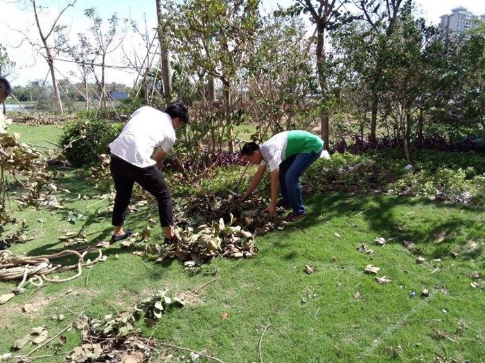 狂風(fēng)吹不走恒正人的堅(jiān)強(qiáng)、暴雨也不能刷去“琥珀”的美麗!7月19日至24日,全體恒正員工頂驕陽,戰(zhàn)高溫迅速開展自救,一顆顆傾覆的苗木被扶正重植、一片片狼藉的區(qū)域被清掃、一處處房間、陽臺(tái)積水被清理,“琥珀悠瀾”在我們的自救中正一步步找回昔日美麗!