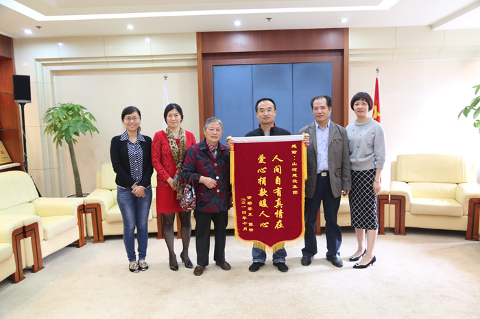 10月17日一早,武漢城市職業(yè)學(xué)院學(xué)前教育專業(yè)大二學(xué)生陳鈴71歲的奶奶就和爸爸、舅爺一起坐第一班城際列車,從黃州趕到武漢,為山河集團(tuán)送來(lái)一面寫(xiě)有“人間自有真情在 愛(ài)心捐款暖人心”的錦旗。