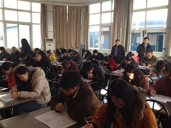 考試時間定于2014年12月13日下午14:00-16:30,考慮到地域分布因素,集團(tuán)總部設(shè)置了四、五樓兩個考場,主要為總部、湖北公司及所轄項目部會計人員考試提供場地,其他區(qū)域公司、地產(chǎn)子公司、專業(yè)子公司也在本單位會議室安排了考場。考試采取閉卷形式,并通過現(xiàn)場監(jiān)考人員備案、遠(yuǎn)程視頻監(jiān)考、考卷A、B分類、考前發(fā)放試卷至監(jiān)考人等方式,確保了本次活動的公開、公平與真實。
