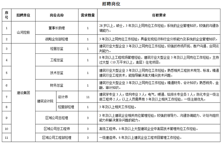 山河集團(tuán)大型精英招募計(jì)劃全面啟動(dòng)
