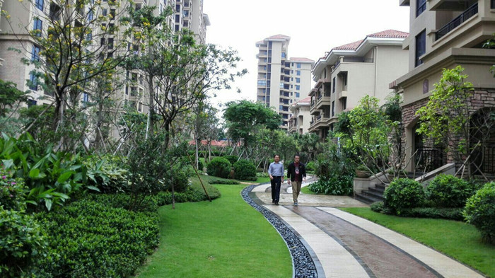 由于飛機晚點,考察組一行到??谝咽钱斖?點多鐘,但為了第二天分析和討論項目更有針對性,他們不顧旅途勞頓,也顧不上解決“饑腸響如鼓”的問題,而是直奔夜幕下的琥珀悠瀾項目現(xiàn)場。