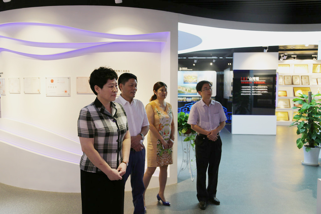 首先,馬萍副部長一行在程董事長的陪同下參觀了企業(yè)展示中心,通過現(xiàn)場的講解與交流,全面而直觀地了解了山河集團(tuán)的發(fā)展歷程、組織架構(gòu)、所獲榮譽(yù)及企業(yè)文化。