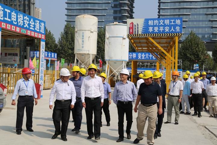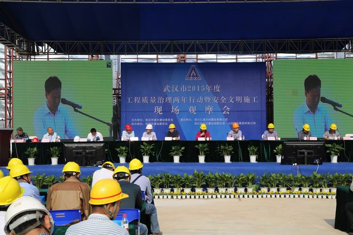 2015年10月22日上午,武漢市2015年度工程質(zhì)量治理兩年行動(dòng)暨安全文明施工現(xiàn)場(chǎng)觀摩會(huì)在山河集團(tuán)湖北公司匯通新長(zhǎng)江中心項(xiàng)目召開(kāi)。湖北省質(zhì)安總站副站長(zhǎng)周偉,武漢市稽查站總工程師曹立新、質(zhì)檢站處長(zhǎng)李華、安全站副站長(zhǎng)熊威,武昌區(qū)文明辦主任肖永高、安監(jiān)局局長(zhǎng)何學(xué)軍、建委書記周旗福、建委副局長(zhǎng)王水泉、建委副主任山峰,湖北新長(zhǎng)江置業(yè)有限公司董事長(zhǎng)陳學(xué)明,北京縱橫監(jiān)理有限公司副總經(jīng)理張忠,山河集團(tuán)董事長(zhǎng)程理財(cái)、副總經(jīng)理程秋明、湖北公司常務(wù)副總經(jīng)理柯為正、副總經(jīng)理羅定軍等領(lǐng)導(dǎo)參加了會(huì)議。武漢市建管辦楊凡主任主持會(huì)議。