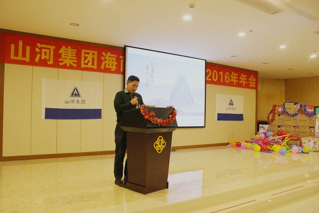 2016年1月23日,海南公司2016年年會(huì)在儋州蘭洋溫泉酒店隆重舉行,海南公司和??诤阏龑?shí)業(yè)有限公司的全體員工、項(xiàng)目經(jīng)理以及項(xiàng)目部管理人員代表參加了會(huì)議,地產(chǎn)集團(tuán)董事長(zhǎng)、海南公司總經(jīng)理王君一當(dāng)天也從武漢趕赴海南參加了年會(huì)。