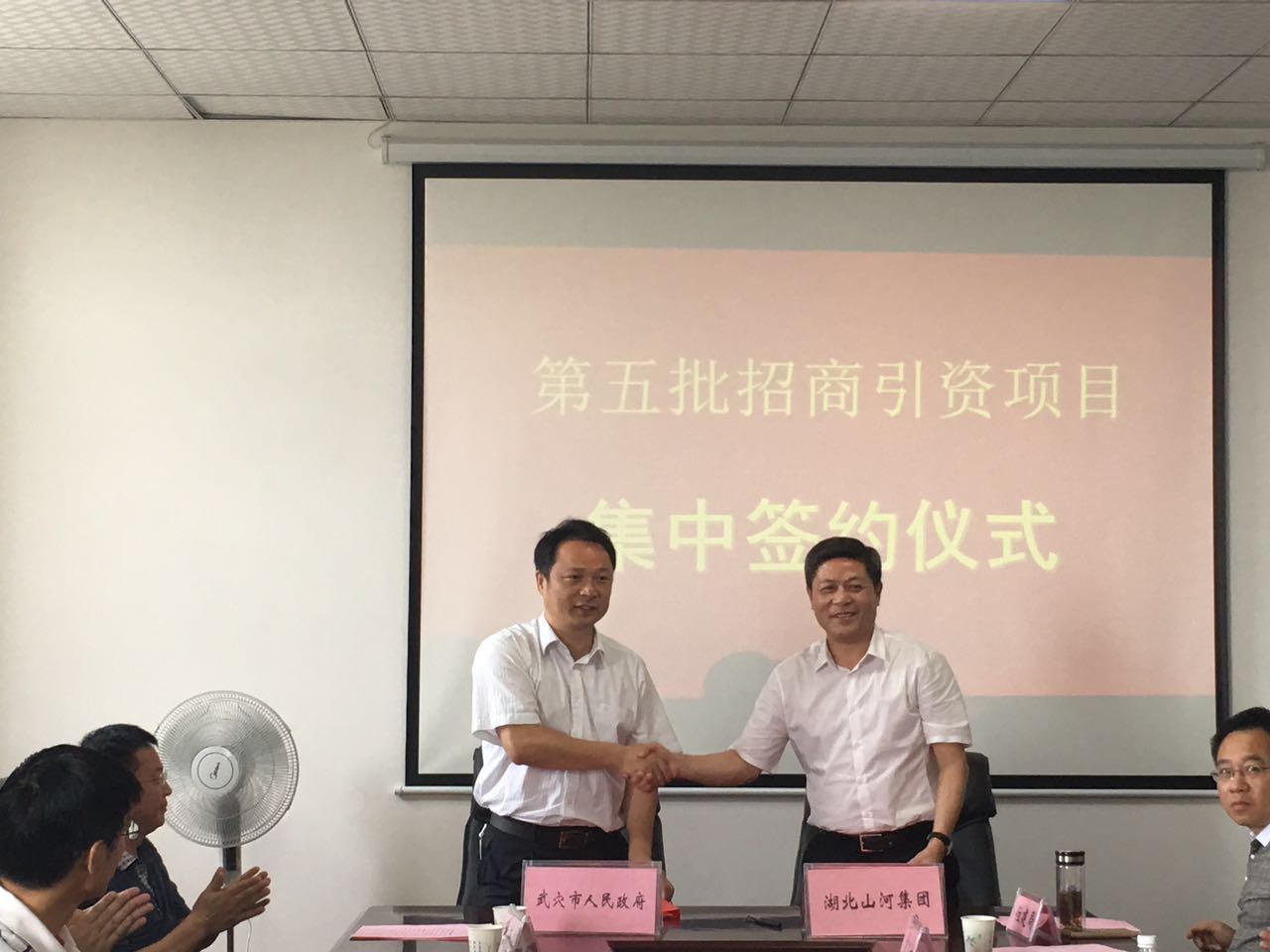 6月18日,武穴市舉行2016年第五批招商引資項目集中簽約儀式。山河集團董事長程理財、山河地產(chǎn)集團總經(jīng)理黃斌參加了本次簽約儀式。