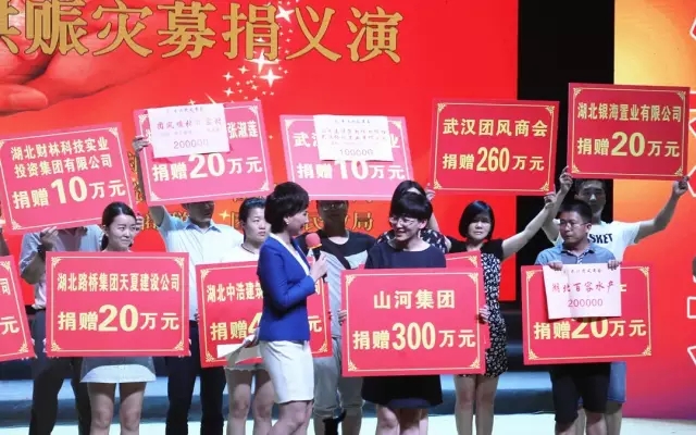 7月22日晚,以“凝聚力量 共渡難關(guān)”為主題的2016團(tuán)風(fēng)縣抗洪賑災(zāi)募捐義演在團(tuán)風(fēng)縣青少年活動(dòng)中心舉行,山河集團(tuán)現(xiàn)場(chǎng)捐贈(zèng)300萬元支援家鄉(xiāng)抗洪救災(zāi)、重建家園。