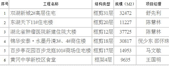 山河集團2006年度湖北省建筑結構優(yōu)質(zhì)工程一覽表