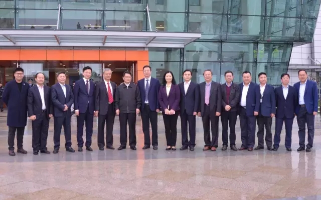 湖北省副省長任振鶴(左三)與程理財(cái)董事長(左五)親切交流