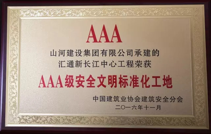 11月30日,2016年中國(guó)建筑業(yè)協(xié)會(huì)建筑安全分會(huì)年會(huì)暨理事會(huì)在合肥召開。由山河集團(tuán)承建的襄陽首信•東方墨爾本項(xiàng)目與武漢匯通新長(zhǎng)江中心項(xiàng)目雙雙榮獲2016年“AAA級(jí)安全文明標(biāo)準(zhǔn)化工地”稱號(hào)。