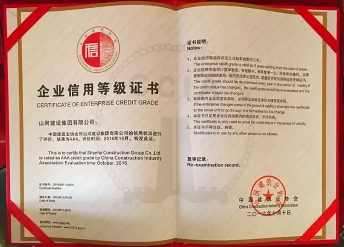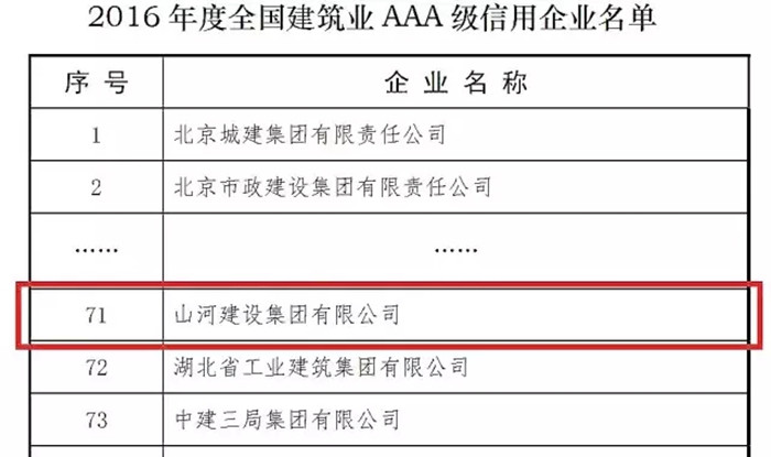 再傳喜訊 山河集團(tuán)榮獲“全國建筑業(yè)AAA級信用企業(yè)”稱號