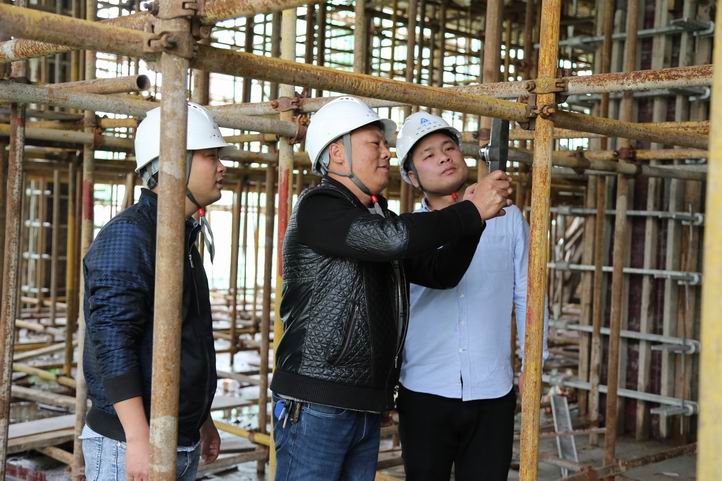 今年,他又被陳慧林調(diào)到新長(zhǎng)江香榭東沙項(xiàng)目,身份還是安全員,目標(biāo)是創(chuàng)“楚天杯”。一到工地,他立馬仔細(xì)地進(jìn)行檢查,發(fā)現(xiàn)扣件緊固度不夠,固定不規(guī)范,工人不服氣說(shuō),我們一直是這樣固定,憑什么說(shuō)不夠,尹定華當(dāng)即拿扭力扳手現(xiàn)場(chǎng)演示給他們看,扣件受力應(yīng)為40-65NM,但現(xiàn)場(chǎng)的扣件有許多只有10-20NM,大家才無(wú)話可說(shuō),馬上改正。