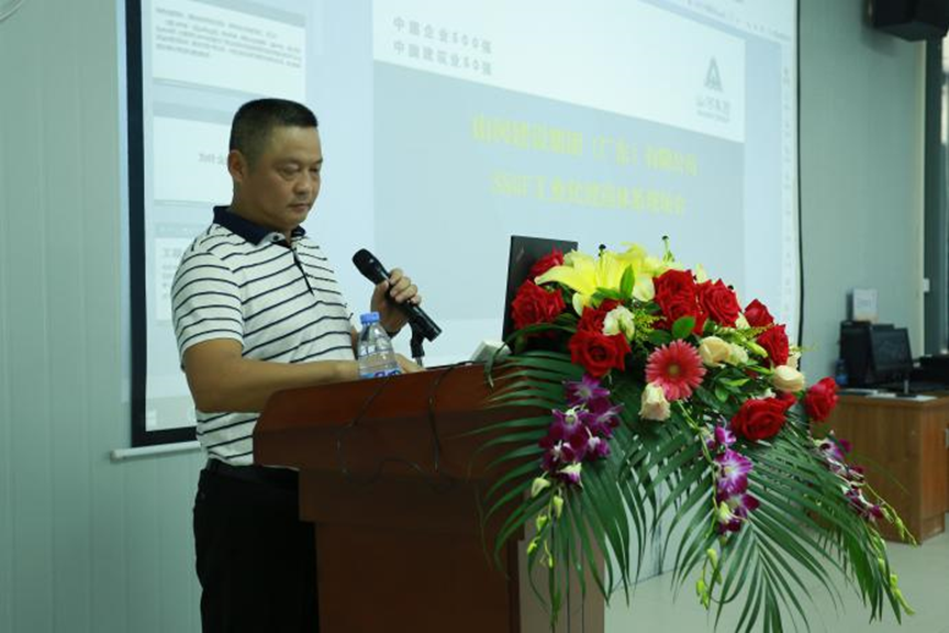 山河集團(tuán)廣東公司副總經(jīng)理趙衛(wèi)對SSGF新建造體系的發(fā)展以及優(yōu)勢與參觀人員作了分享,讓大家感受到建筑行業(yè)一場新革命的到來;紫辰花園SSGF示范項目的項目經(jīng)理佘志斌就施工過程中的經(jīng)驗與參會人員進(jìn)行簡單交流。
