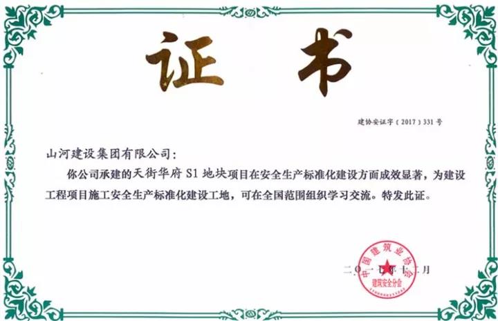12月13日,中國建筑業(yè)協(xié)會建筑安全分會揭曉了2017年度“建設(shè)工程項目施工安全生產(chǎn)標(biāo)準(zhǔn)化建設(shè)工地”名單,山河集團海南公司天街華府S1地塊項目入圍,摘得全國建筑安全文明施工最高獎。這是海南公司繼2011年寶安?濱海豪庭1#、2#住宅樓項目獲獎之后再獲此項榮譽。