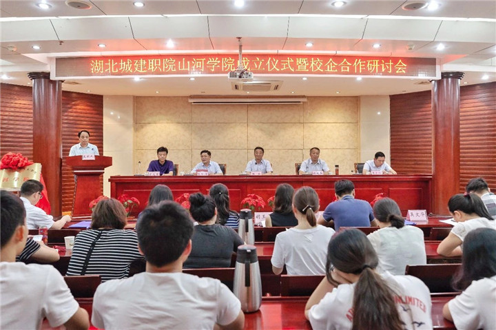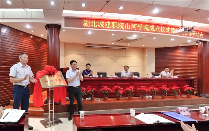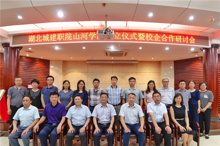 6月8日下午,位于風(fēng)景秀麗的武漢東湖高新技術(shù)開發(fā)區(qū)藏龍大道,在湖北城市建設(shè)職業(yè)技術(shù)學(xué)院培訓(xùn)中心大樓里,山河集團(tuán)黨委書記、董事長程理財與湖北城市建設(shè)職業(yè)技術(shù)學(xué)院黨委書記程超勝共同為“山河學(xué)院”揭牌。這標(biāo)志著山河集團(tuán)打造人才梯隊建設(shè)、實施人才興企戰(zhàn)略,在湖北城建職院設(shè)立“山河學(xué)院”的校企合作正式啟動。