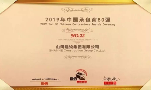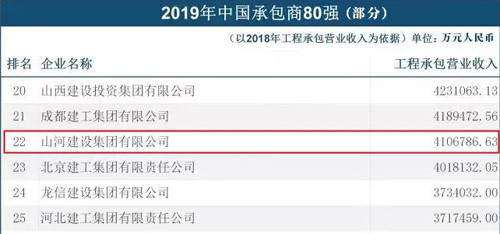 11月8日,美國(guó)《工程新聞?dòng)涗洝罚‥NR)和中國(guó)《建筑時(shí)報(bào)》聯(lián)合發(fā)布2019年度“中國(guó)承包商80強(qiáng)和工程設(shè)計(jì)企業(yè)60強(qiáng)”榜單。山河集團(tuán)再次榮登中國(guó)承包商80強(qiáng)排行榜,名列第22位,這是集團(tuán)連續(xù)第7次上榜,也是湖北省唯一上榜的建筑企業(yè)。