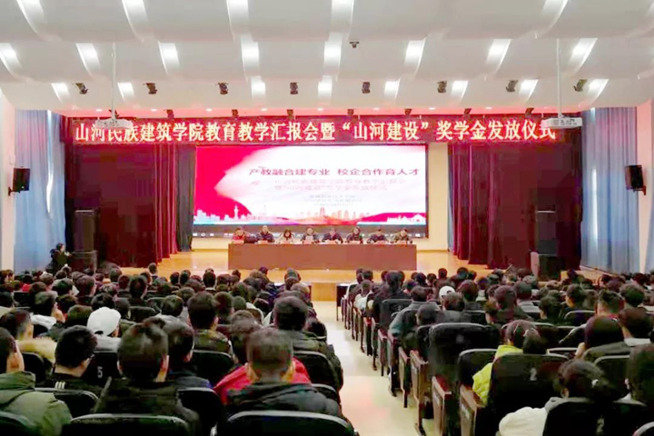 初冬時節(jié),寒意漸濃,12月11日上午,恩施職業(yè)技術(shù)學(xué)院學(xué)術(shù)報告廳里暖意融融。山河建設(shè)集團(tuán)總裁許金華,集團(tuán)人力資源總監(jiān)李穎、人力資源部總經(jīng)理匡亦成,工程技術(shù)管理部BIM中心主任李圣龍一行和學(xué)校200余名師生在這里聆聽了山河民族建筑學(xué)院教育教學(xué)匯報會,共同見證了“山河建設(shè)”獎學(xué)金發(fā)放儀式。會議由山河民族建筑學(xué)院副院長雷元凱主持。