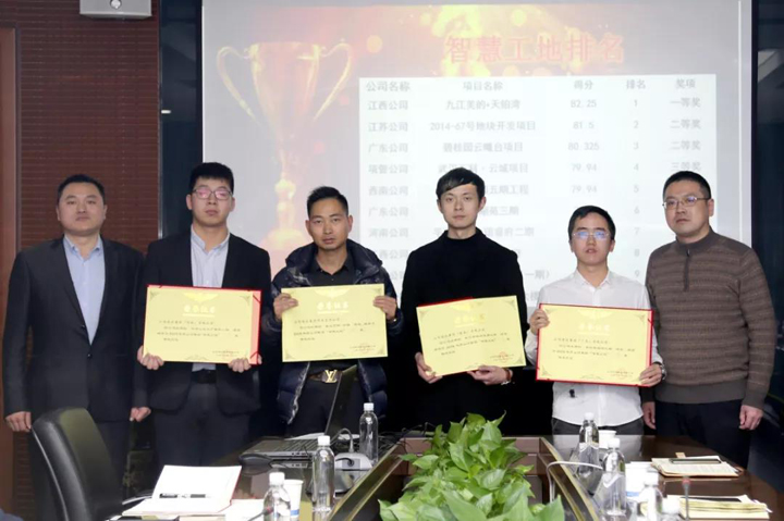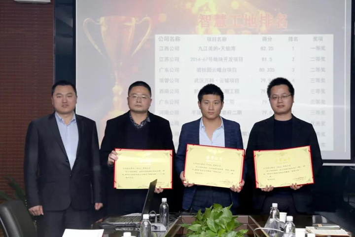 江西公司九江美的•天鉑灣項目榮獲智慧工地一等獎;江蘇公司2014-67號地塊開發(fā)項目、廣東公司碧桂園云曦臺項目榮獲智慧工地二等獎;項目管理公司武漢萬科·云城項目、西南公司黔江碧桂園五期工程、廣東公司美的翰湖苑三期工程、河南公司平頂山恒大珺睿府二期工程榮獲智慧工地三等獎;江西公司九江美的•國賓府項目、湖北公司武穴市棚戶區(qū)改造項目(一期)、湖北公司宜昌自貿區(qū)綜合服務大樓項目榮獲智慧工地優(yōu)秀獎。