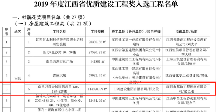 “杜鵑花獎(jiǎng)”是江西省建設(shè)工程質(zhì)量最高榮譽(yù),本次共有21項(xiàng)房屋建筑工程入選,這也是繼地鐵萬(wàn)科•時(shí)代廣場(chǎng)項(xiàng)目之后,江西公司第二次獲此殊榮。