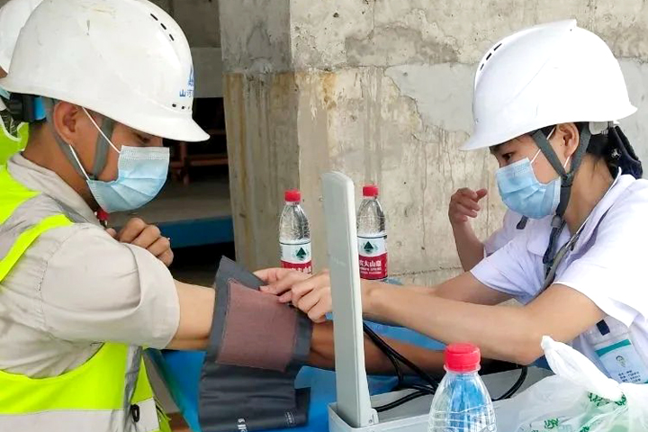 項目部邀請專業(yè)醫(yī)護(hù)人員對現(xiàn)場的工程人員進(jìn)行了各項健康檢測,讓大家掌握自身健康情況,有效預(yù)防各類疾病,以良好的狀態(tài)投入到工作中。