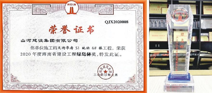 近日,山河建設(shè)集團(tuán)海南公司承建的天街華府S1地塊6#樓工程榮獲2020年度海南省建設(shè)工程“綠島杯”獎,這是海南公司第七次攬獲海南省建設(shè)工程質(zhì)量最高榮譽(yù)。
