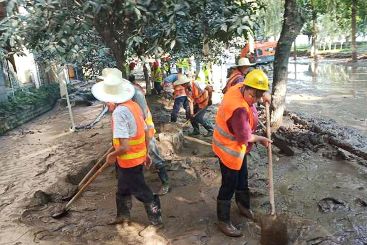 8月19日至20日,“長江2020年第5號洪水”“嘉陵江2020年第2號洪水”陸續(xù)通過重慶主城區(qū),巴南區(qū)魚洞江濱路、巴濱路、木洞、李家沱等低洼地區(qū)受災(zāi)嚴重。山河建設(shè)集團西南公司碧桂園巴南工貿(mào)園項目部主動請纓,組織管理人員及工人成立了一支道路清淤志愿隊,積極投入到救災(zāi)工作中。