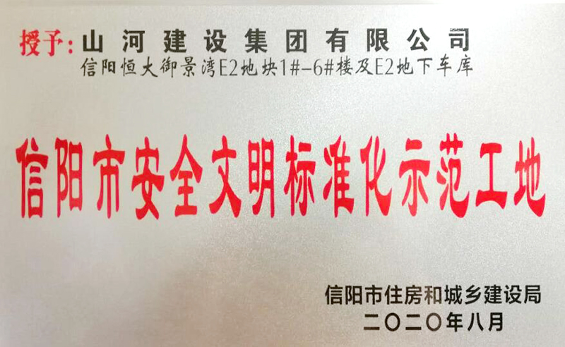 [河南公司]山河集團河南公司恒大御景灣項目榮獲“信陽市安全文明標準化示范工地”