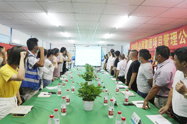 接下來,參會人員全體起立,高舉右手進(jìn)行宣誓,承諾認(rèn)真履行管理職責(zé),堅守職業(yè)道德底線,用自己的智慧和努力服務(wù)企業(yè),筑就山河品質(zhì)。