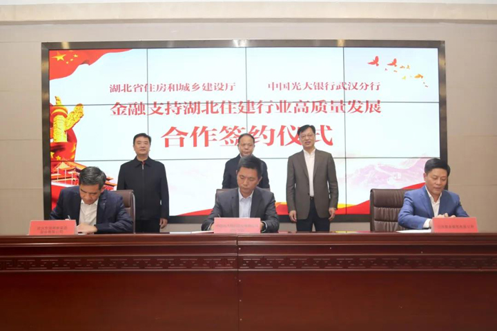 10月30日,由湖北省住房和城鄉(xiāng)建設(shè)廳、中國光大銀行武漢分行主辦的金融支持湖北住建行業(yè)高質(zhì)量發(fā)展合作簽約儀式在省住建廳舉行。湖北省人民政府副省長萬勇,省住建廳黨組書記、廳長李昌海,黨組副書記、副廳長張弘,光大銀行武漢分行黨委書記、行長譚夢湘,黨委委員、副行長唐紅斌等領(lǐng)導(dǎo)出席了簽約儀式。