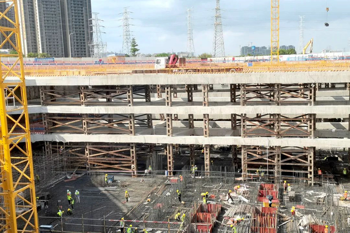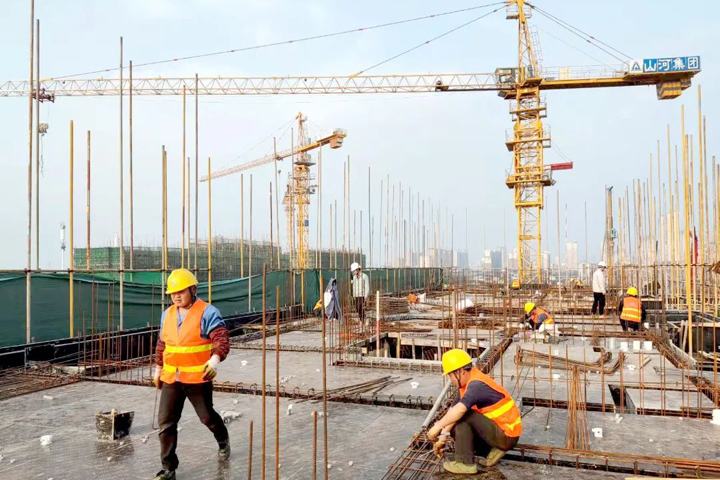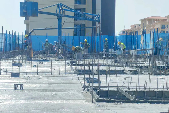 ▲東方碧桂園東方之珠項(xiàng)目二期工人在澆筑混凝土