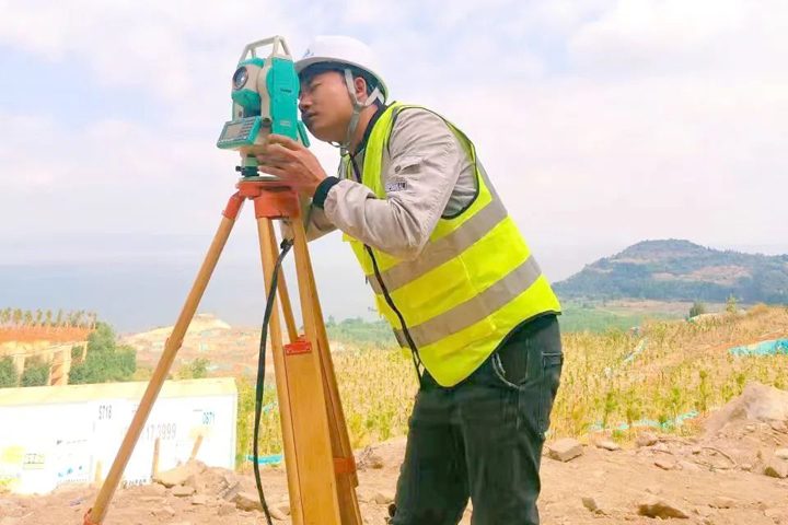 ▲昆明天池公館項(xiàng)目施工員在進(jìn)行測(cè)量