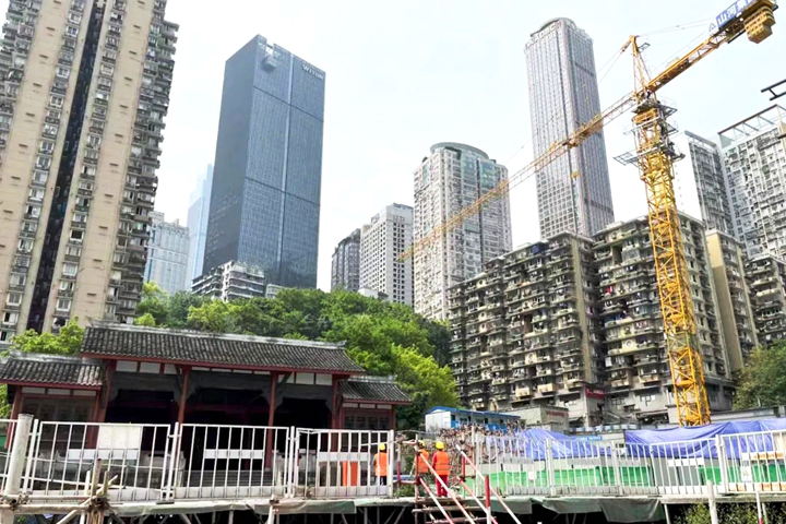 ▲重慶老鼓樓衙署遺址公園項(xiàng)目施工人員抓住晴好天氣加緊施工