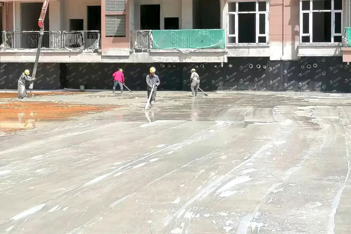 ▲信陽恒大御景灣項(xiàng)目工人進(jìn)行地下室頂板防水保護(hù)層施工