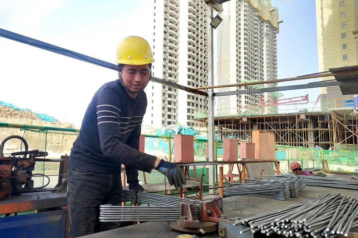 ▲咸陽三原鳳凰府項(xiàng)目工人在制作鋼筋