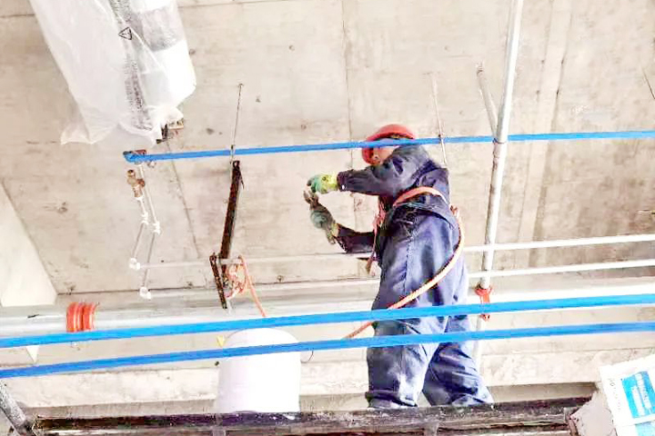 ▲克拉瑪依市獨(dú)山子區(qū)匯民國(guó)際商業(yè)中心項(xiàng)目工人正在進(jìn)行地下室安裝工程施工