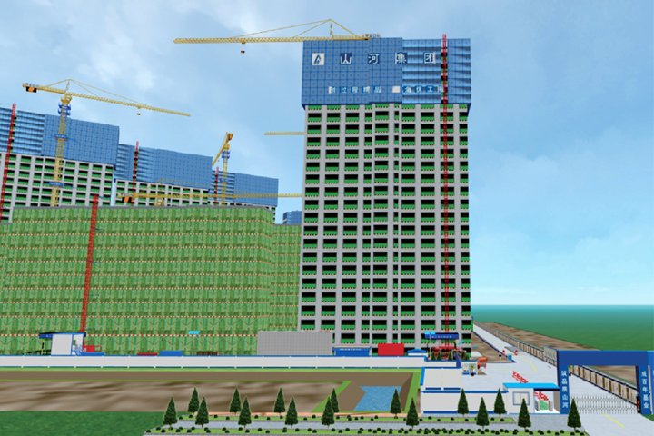 現(xiàn)場(chǎng)安裝了揚(yáng)塵監(jiān)測(cè)設(shè)備,應(yīng)用了施工升降機(jī)安全監(jiān)控系統(tǒng)、塔吊監(jiān)控系統(tǒng)、吊鉤可視化系統(tǒng)、辦公區(qū)生活區(qū)視頻監(jiān)控系統(tǒng)、員工通道門禁系統(tǒng)等智慧產(chǎn)品。同時(shí),運(yùn)用BIM技術(shù)進(jìn)行三維場(chǎng)布、建模、機(jī)電碰撞測(cè)試等,有效控制施工質(zhì)量。