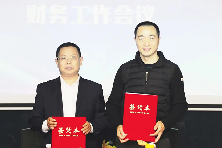 控股集團(tuán)總裁李洪和李先寶簽訂財(cái)務(wù)團(tuán)隊(duì)年度目標(biāo)責(zé)任狀。李先寶和融資及核算監(jiān)管、稅管、資管業(yè)務(wù)負(fù)責(zé)人簽訂年度目標(biāo)責(zé)任狀。