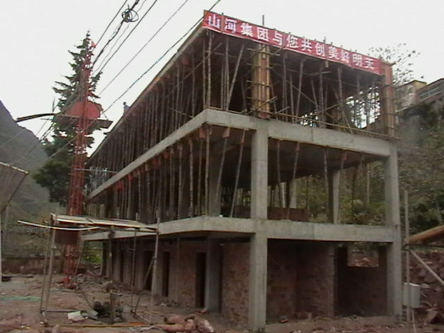 我公司承建的四川省漢源縣大堰鄉(xiāng)中心小學工程經(jīng)過兩個多月的緊張有序施工,已經(jīng)初見雛形。宿舍樓主體結構已經(jīng)封頂,一層填充墻砌筑完成;教學樓三層主體結構正在施工,預計本月23日主體可以封頂;綜合樓施工至一層結構。整個工程計劃將于2008年12月28日竣工。